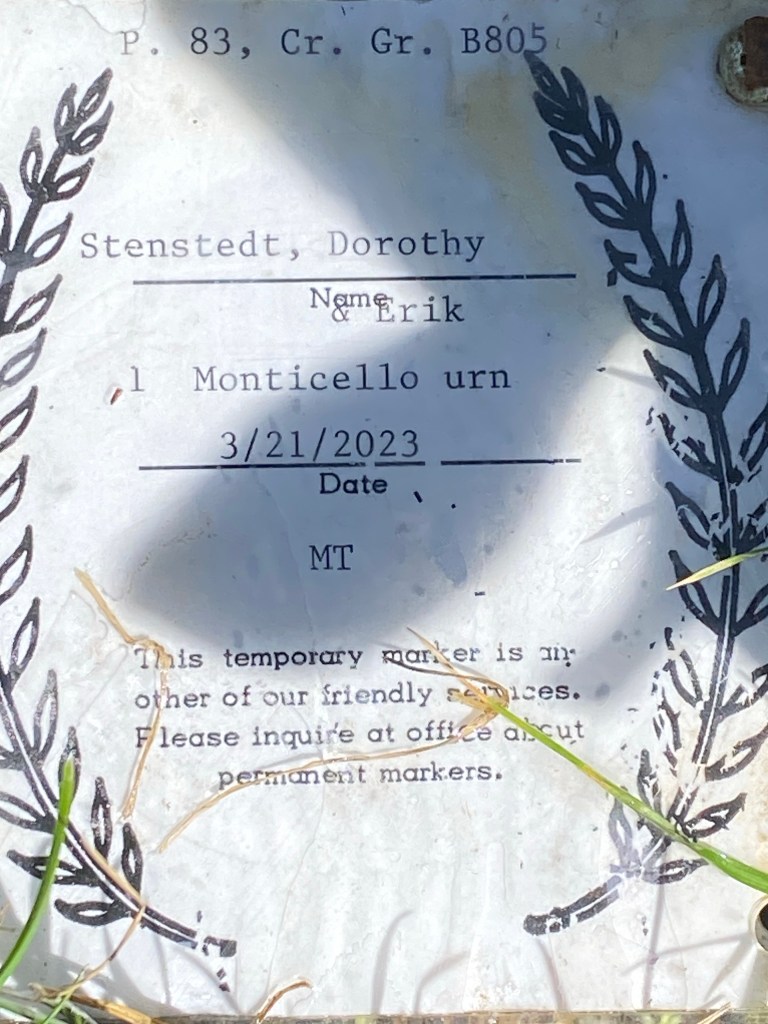With our good friends Carl and Lee Kempf we went to the grave, left some flowers and had a nice picnic in the sunshine.
